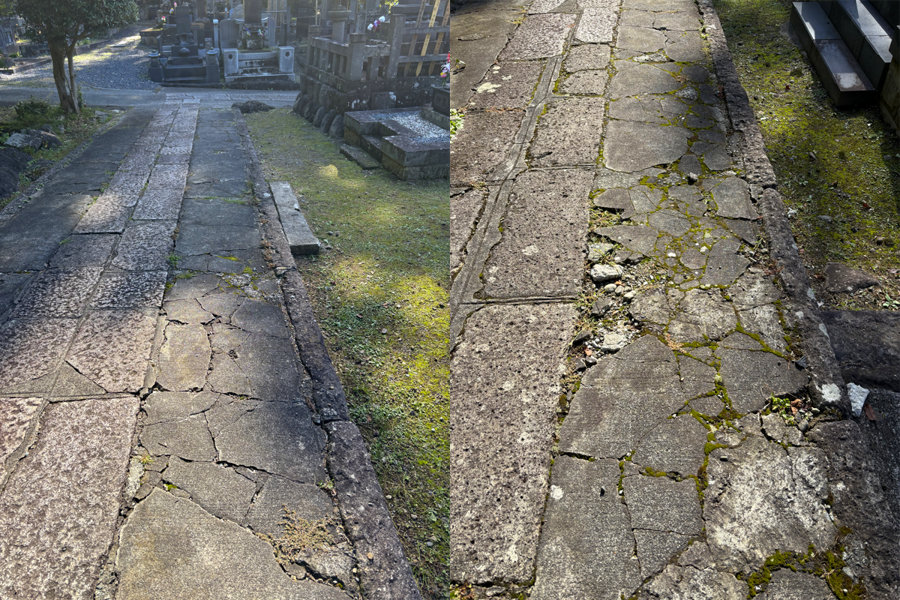 年々コンクリート箇所の破損が増え、足が引っかかる事もありました。この度、御寄進により改修工事を行いました。