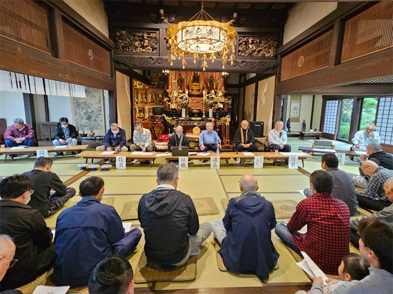 今年も無事に総会を開く事が出来ました。総会後の境内奉仕作業は雨天のため、通常の作業と軽作業に分かれて行いました。皆さん、ご苦労様でした。合掌